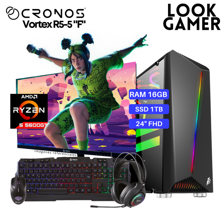 PC Look Gamer CRONOS Vortex R5-5 "F", RAM 16GB, SSD 1TB, Monitor 24″ FHD.